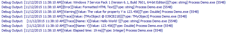- Log to one or more output handlers such as the Console, HTML, Text file, CSV file, TCP/IP, Browser, Windows Event Log, ...