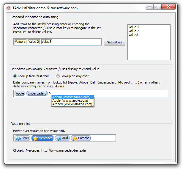 TAdvListEditorTAdvListEditor sample: Demo of Advanced ListEditor Component
