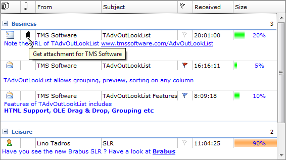 TAdvOutlookList sample 2: Demo of Grouping