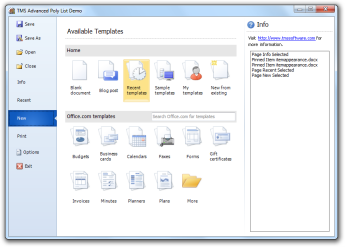 TAdvPolyList overview demo 2: Demo of Office 2010 application menu