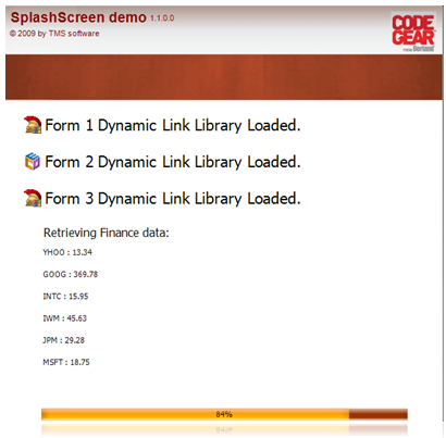 TAdvProgressBar (2 Samples)TAdvProgressBar sample 1: Demo 1 of Advanced ProgressBar Component