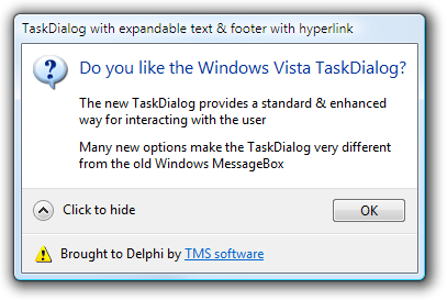 TAdvTaskDialogTAdvTaskDialog sample: Demo of TaskDialog Component
