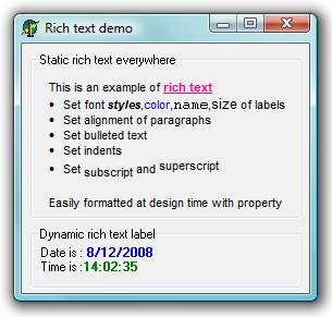 TRTFLabelTRTFLabel sample: Demo of RTF Label Component